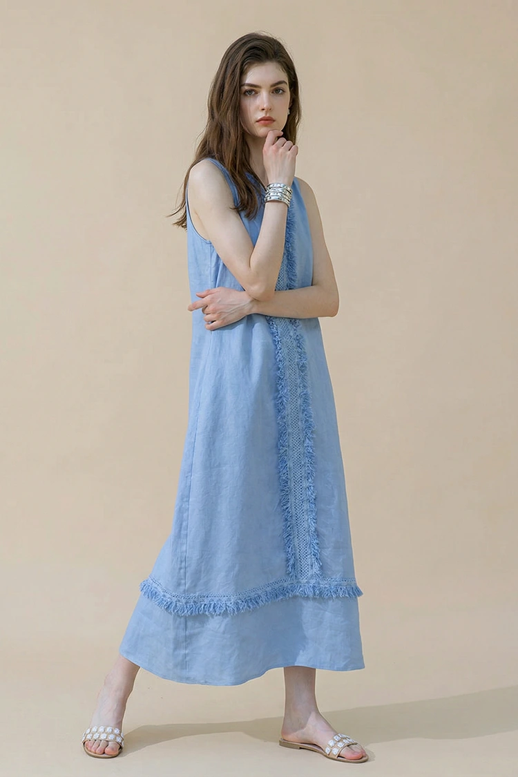 بالإضافة إلى ذلك، يتمتع الكتان بملمس طبيعي متجعد قليلاً ولا يتطلب كيًا متعمدًا ويضفي جوًا غير رسمي ومريح، وهو ما يتماشى مع الاتجاه العالمي الحالي للملابس غير الرسمية والملابس ذات الطراز الفرنسي. لديها قبول كبير في السوق. وفي الوقت نفسه، يتمتع الكتان بقوة شد ممتازة، وهو متين وقابل للارتداء، ولا يتساقط من الألياف، ولا يبهت بسهولة. الرعاية اليومية بسيطة، ولا تتطلب صيانة معقدة، ويمكنها الحفاظ على شكل وملمس الملابس لفترة طويلة، مما يقلل بشكل كبير من تكاليف ما بعد البيع للمشترين. علاوة على ذلك، يعتبر الكتان مادة طبيعية وصديقة للبيئة بدون إضافات كيميائية. إنه صديق للبشرة وغير مهيج، ومناسب لجميع أنواع البشرة، ويلبي سعي المستهلكين الحاليين للحصول على ملابس صحية وصديقة للبيئة. وهذا أيضًا أحد الأسباب الأساسية التي تجعل هذا الفستان الطويل أكثر مبيعًا في الصيف.