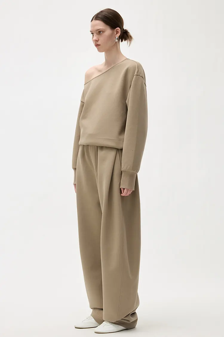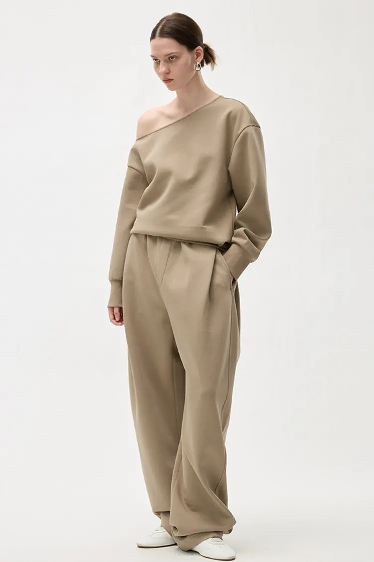 تم تصميم حزام الخصر بالكامل باستخدام تقنية الطيات. المقاس فضفاض ومريح، بأسلوب أنيق. يمكنه تشكيل أشكال الساق المختلفة بشكل جميل ويتمتع بدرجة عالية من المرونة لخطوط الساق. لا يقتصر القص الفضفاض ذو الساق الواسعة على شكل الجسم، مما يجعل الساقين تبدو أنحف وأكثر استقامة. عند المشي، اللف أمر طبيعي. إنه يحتفظ بالطبيعة غير الرسمية والمفعمة بالحيوية للسراويل غير الرسمية بينما يتمتع أيضًا بخصائص أنيقة وأنيقة للسراويل واسعة الساق. يختلف عن السراويل الرياضية العادية، فهو يتمتع بإحساس أقوى بالأناقة والرقي. الجمهور المستهدف واسع النطاق، وتحويل المبيعات مستقر.