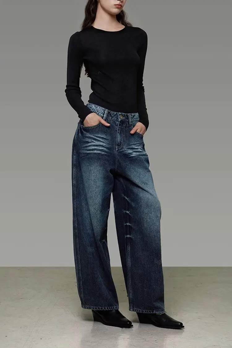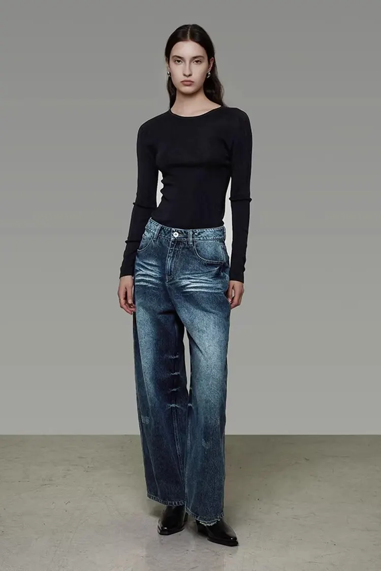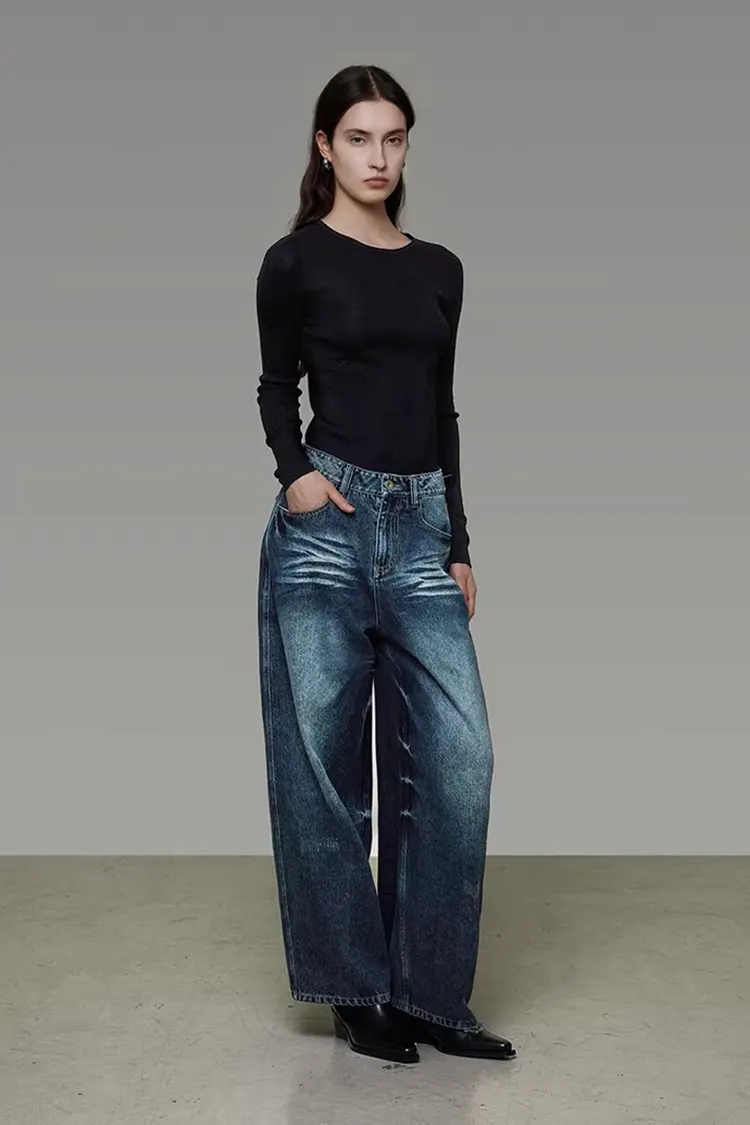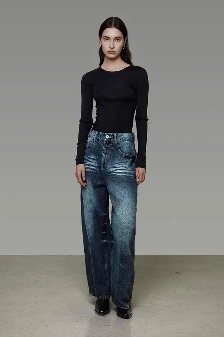 A3: تمت معالجة بنطال الدنيم المغسول ذو الأرجل الواسعة بغسل الماء لتنعيم القماش. القماش ليس قاسيًا ولا يسبب تهيجًا للجلد. يحتوي على كمية عالية من القطن ويحتوي على ألياف قابلة للتنفس، مما يضمن التهوية الجيدة. ارتدائها في الربيع والصيف منعش وليس خانقًا.